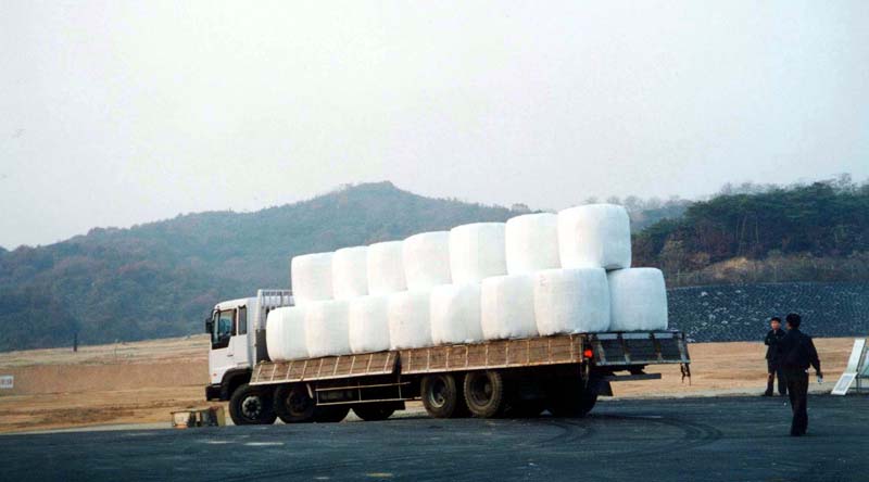 Diese Deponie außerhalb der Stadt Jeonju nimmt Abfälle aus Jeonju und zweier kleineren Städte in der Nähe an, d. h. es werden insgesamt täglich 600 Ballen an Haushaltsabfällen und Biomüll (30 %) an diese Deponie geliefert. Mitte November 2001 wurde drei von unseren Maschinen in Betrieb genommen, die bedeckt von einem Dach an 6 Wochentagen 10 Stunden am Tag arbeiteten.