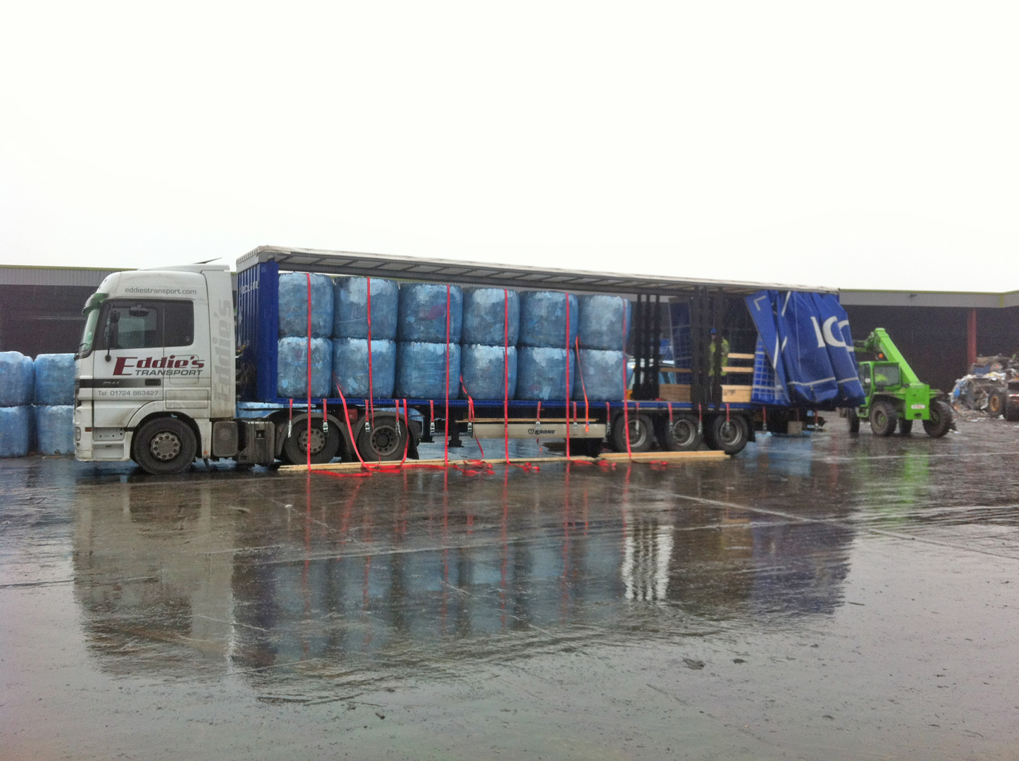 The material is compressed and wrapped into easily handled round bales, that can be stored indoor or outdoor, without being affected by the weather. The bales enables the use of different means of rail, road and waterway transport.