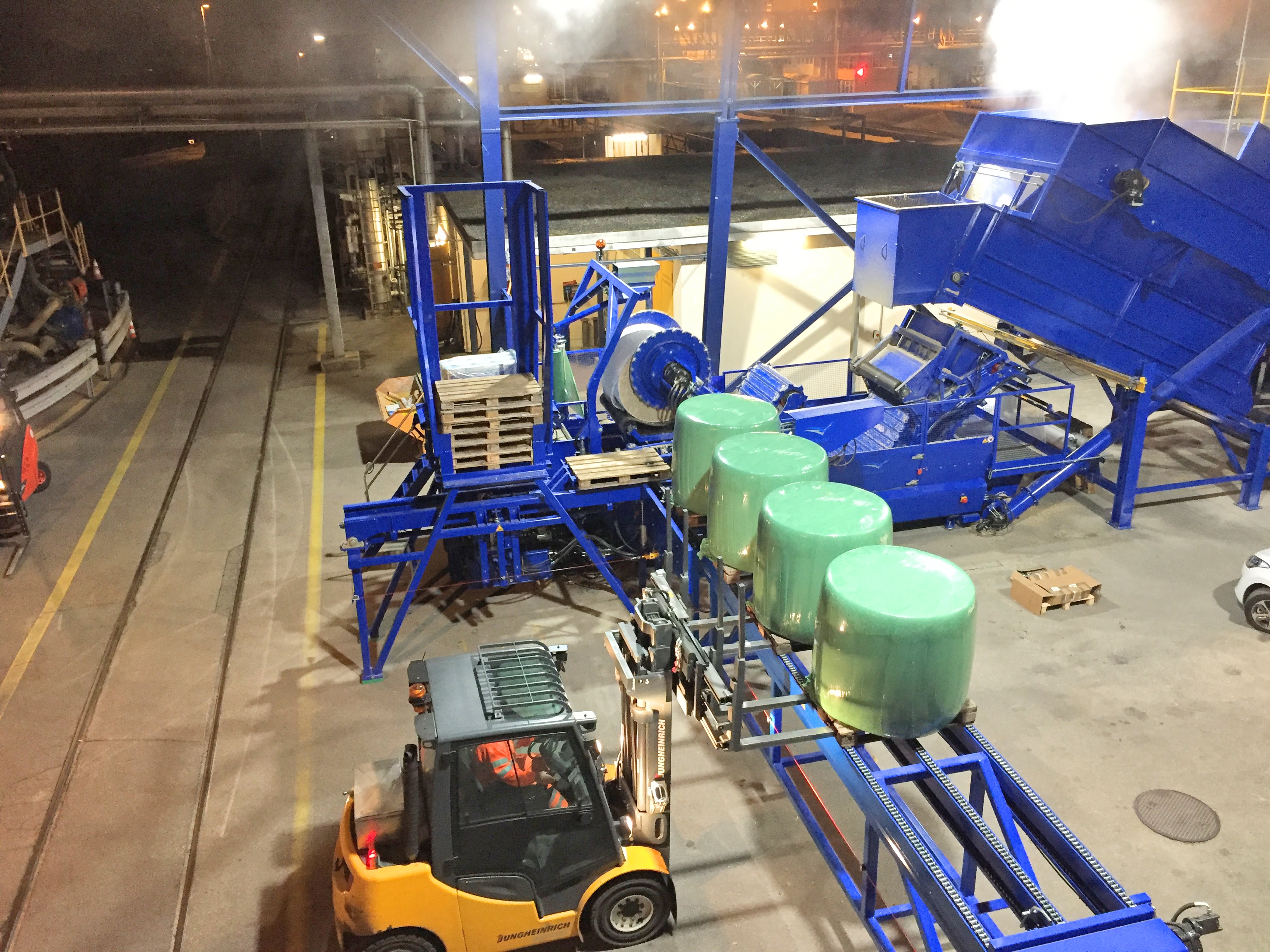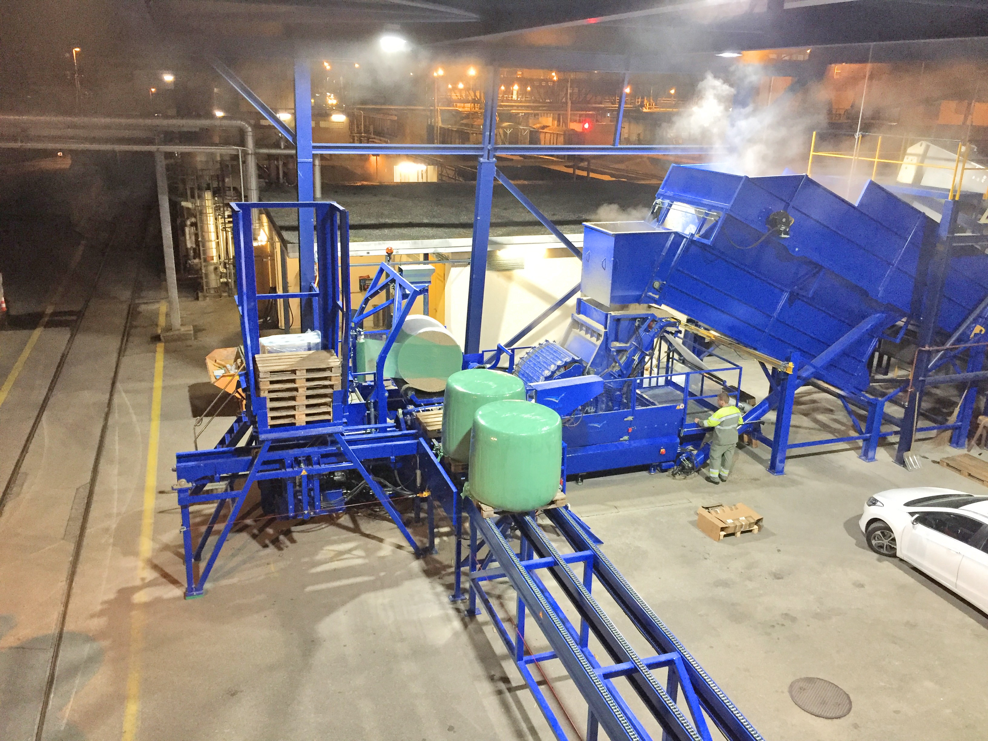 This is a case study of how the Flexus heavy duty round baling system is implemented at the sugar beet processing facility in Aarberg, Switzerland. Schweizer Zucker AG is baling around 30.000 tons of sugar beet pulp during the period of october to the end of the year. To meet demands and cover a wider range of usage, some of the beet pulp is baled during night time when normal transport and logistics is inactive and stored for further transportation by train or truck.